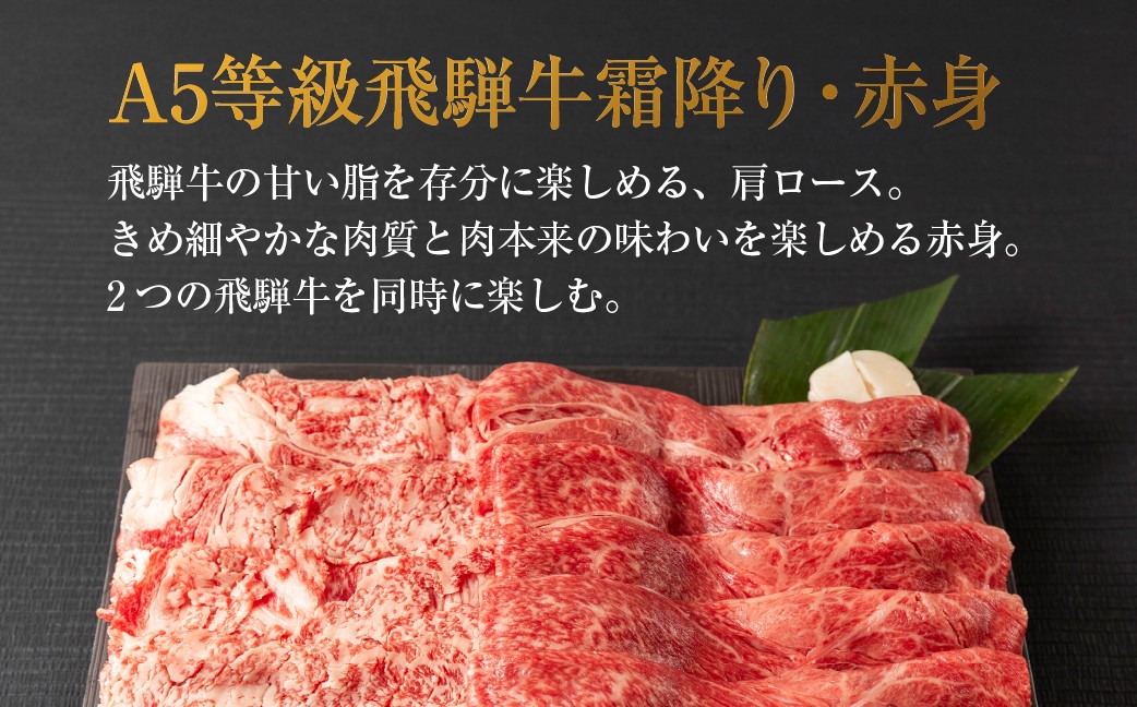 チョイス限定 飛騨牛一頭買いの老舗が贈る赤身霜降り食べ比べセット [A5 等級] 飛騨牛モモ・肩ロースすき焼き しゃぶしゃぶ用1kg(500g×2) 高級 肉 牛肉 和牛 黒毛和牛 赤身 霜降り すき焼き すきやき しゃぶしゃぶ シャブシャブ ギフト 贈答 熨斗 お歳暮 正月 プレゼント トキノ屋食品 本巣市 [mt1551] 40000円 四万円