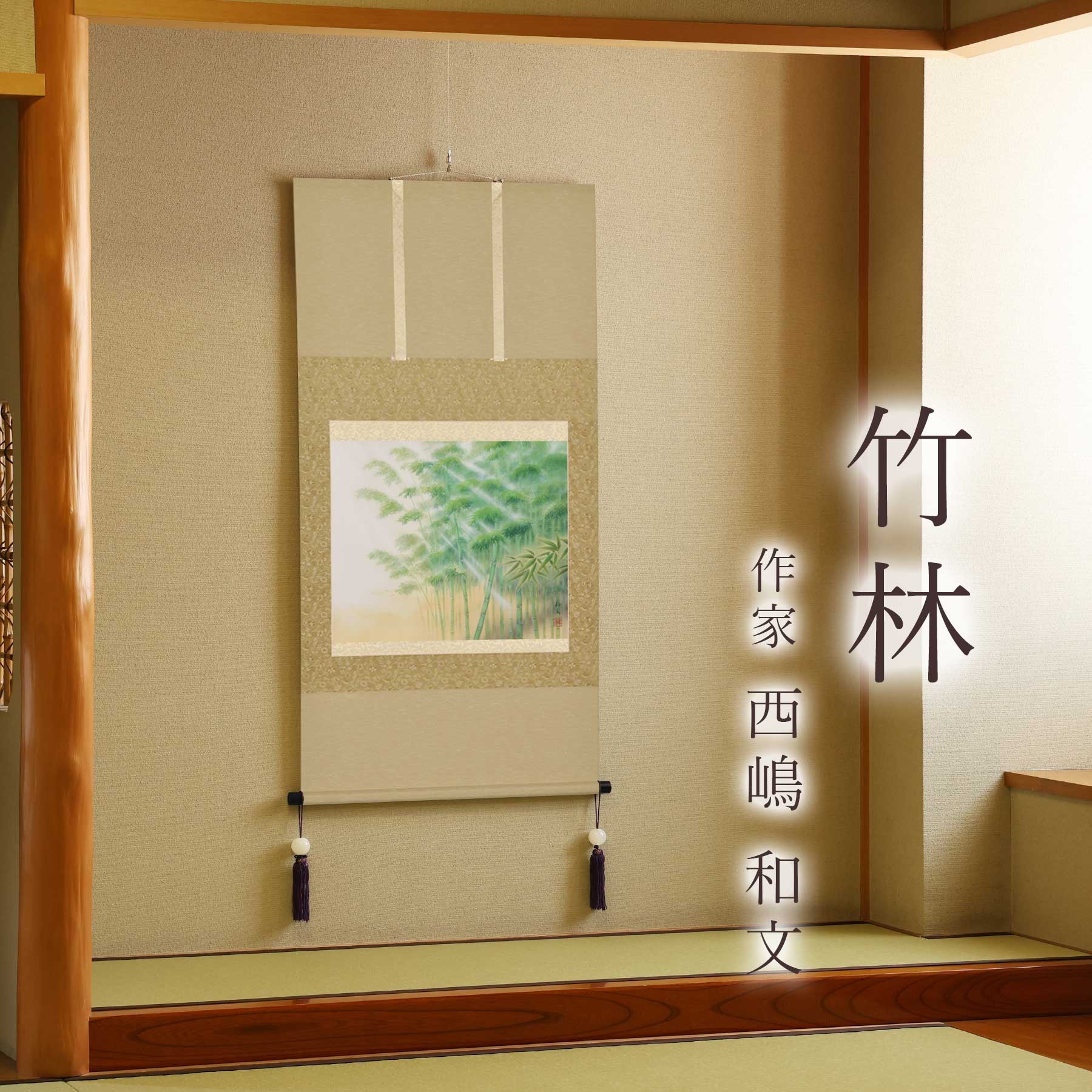 掛け軸「竹林」 西嶋和文 尺八横 サイズ:68×137cm 桐箱付 掛け軸 和室 おしゃれ 日本画 表装 床の間