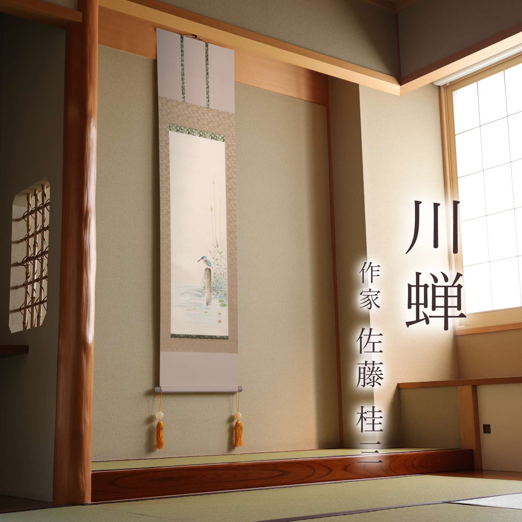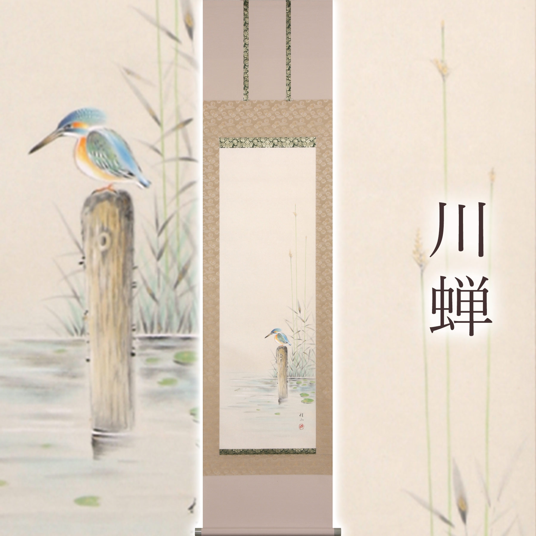 掛け軸「川蝉」 佐藤桂三 半切立 サイズ:47×190cm 桐箱付 掛け軸 和室 おしゃれ 日本画 表装 床の間