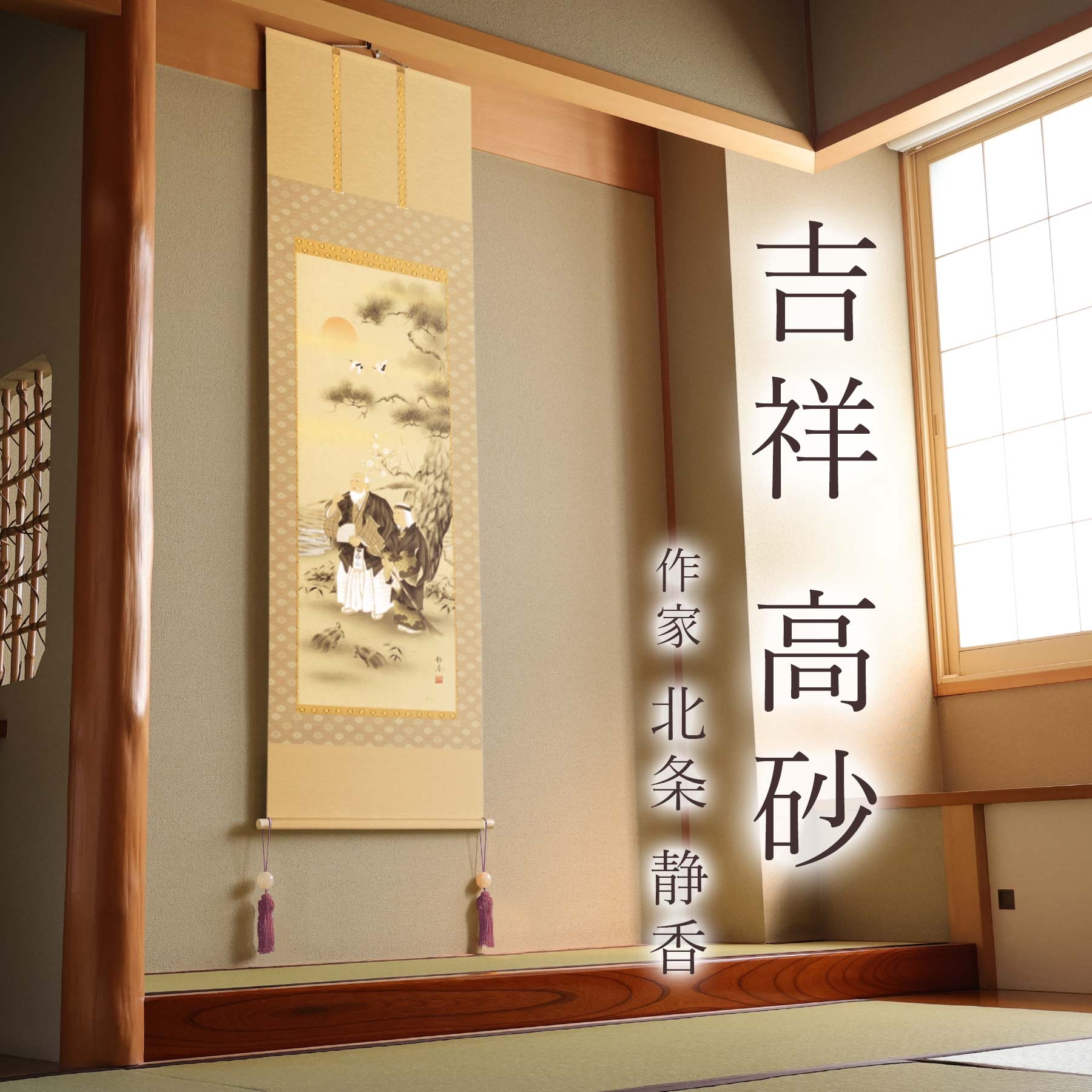 掛け軸「吉祥 高砂」 北条静香 尺五立 サイズ:54.5×190cm 桐箱付 掛け軸 和室 おしゃれ 日本画 表装 床の間