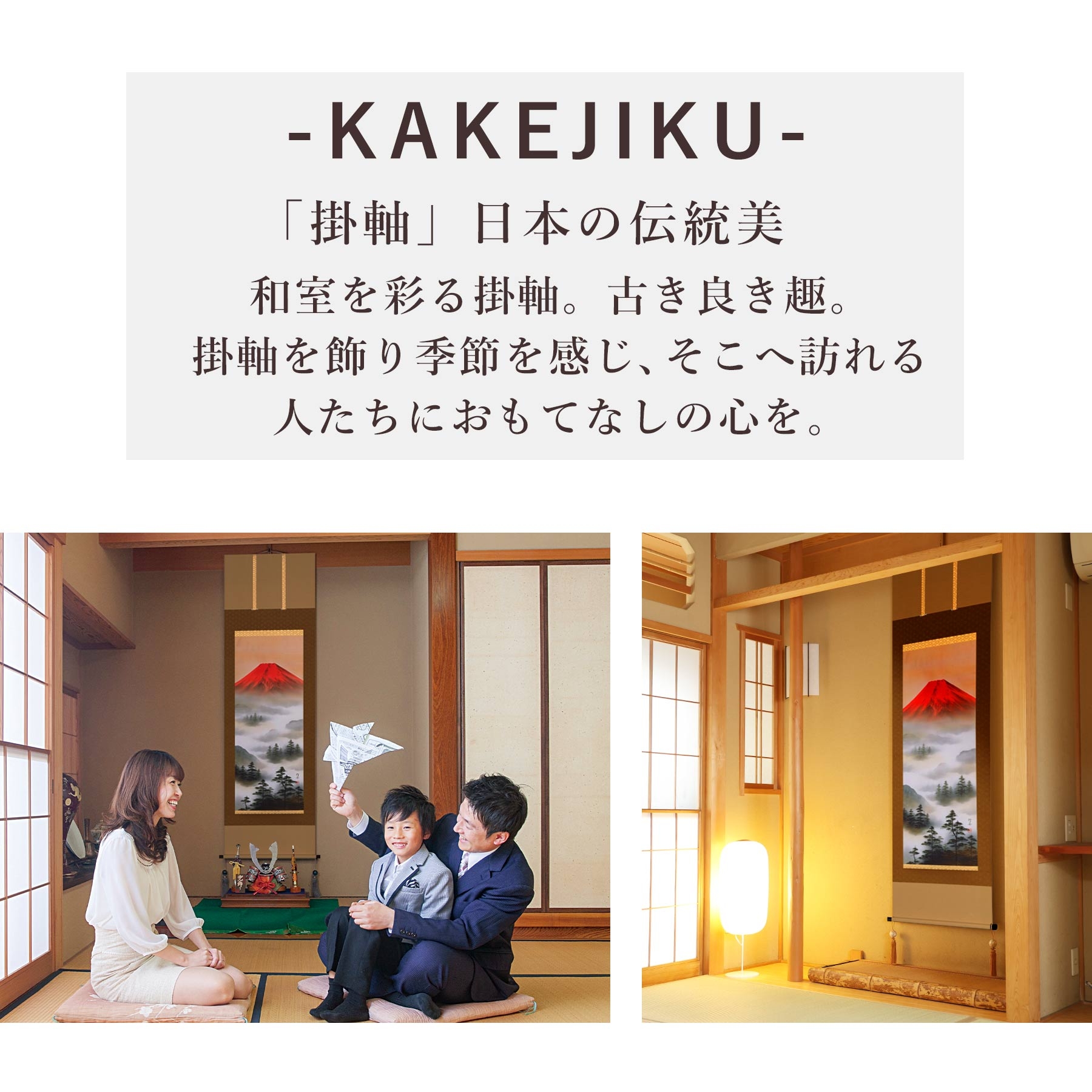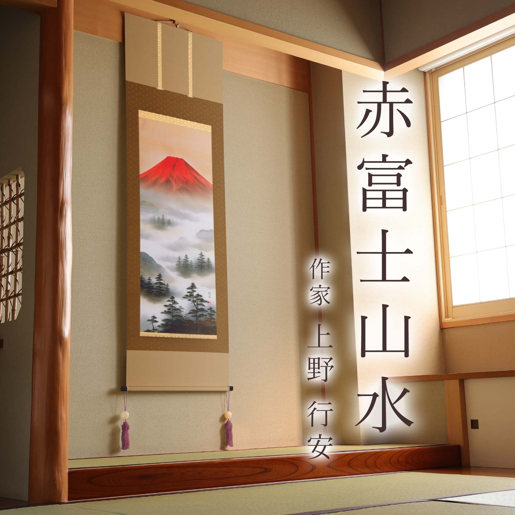 掛け軸「赤富士山水」 上野行安 尺五立 サイズ:54.5×190cm 桐箱付 掛け軸 和室 おしゃれ 日本画 表装 床の間