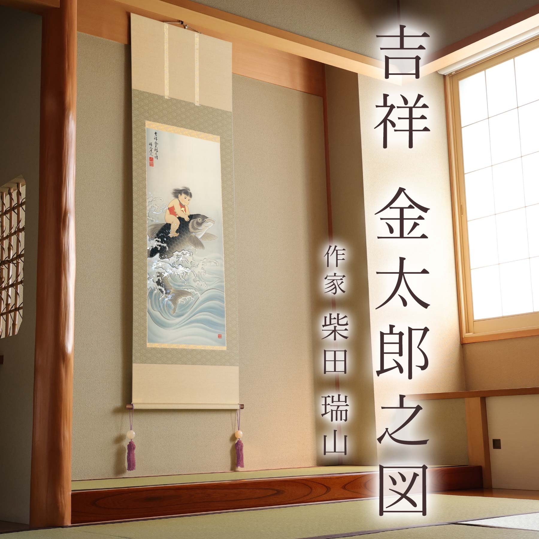 掛け軸「吉祥 金太郎之図」 柴田瑞山 尺五立 サイズ:54.5×190cm 桐箱付 掛け軸 和室 おしゃれ 日本画 表装 床の間