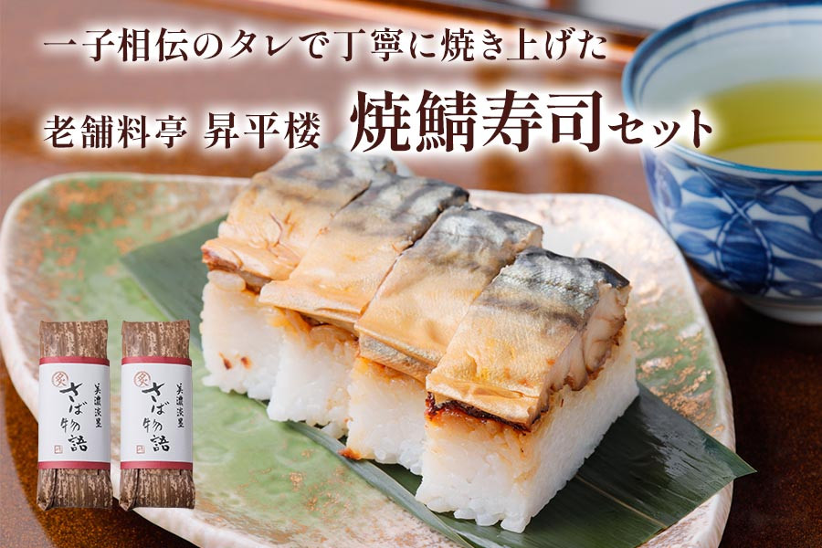 《人気の鯖寿司セットをご家庭の食卓に》 〆鯖寿司1本と焼鯖寿司1本のセットです。 福井の行商人が塩漬け鯖を持ち込んだことから、岐阜県根尾地区には古くから鯖寿司文化が受け継がれています。 塩鯖や純米酢は国産にこだわって材料を厳選。 シャリにはフルーティーな香りが特徴の岐阜県産ハツシモを使用しています。 淡麗辛口の日本酒や白ワインとの相性もぴったりです。 商品は冷蔵で届きますが、身を下にしてレンジで20~30秒温めると、ふっくらとした食感を楽しめます。 《昔ながらの製法にこだわった添加物不使用の〆鯖寿司》 昇平楼の〆鯖寿司は、昔ながらのレシピを再現。 冷蔵技術のない当時と変わらぬ製法で、添加物は一切使用しておりません。 しっかりとした甘味とまろやかな塩味、酸味が特徴。 シンプルな材料ながら発酵によって複雑な味わいが広がり、コクのある力強い旨味を感じられます。 《老舗料亭の職人が醤油ベースの甘辛ダレで仕上げた焼鯖寿司》 定番である〆鯖寿司のバリエーションとして作り出したのが焼鯖寿司。 昇平楼の職人が、岐阜県産たまり醤油をベースにした秘伝のタレで丁寧に焼き上げました。 うなぎの「百遍返し」同様に、皮が縮んだり破れたりしないよう手間暇かけて焼き上げることで、タレの香ばしさが鯖本来の旨味を引き立てます。 《本巣市で愛され続ける老舗料亭》 岐阜県本巣市にある昇平楼は、150年の歴史を持つ川魚料理の老舗料亭。 人気の鯖寿司やうなぎ料理をはじめ、四季を味わう会席・慶弔料理を提供しています。 岐阜県揖斐郡大野町に存在した野村藩の離座敷から移築された武家書院やライトアップされた庭園など、歴史が感じられる空間も人気です。 時代に応じて変えるべきところは変え、守るべきところは守り続け、地域の人々と共に歩んできました。 ■提供事業者:有限会社昇平楼