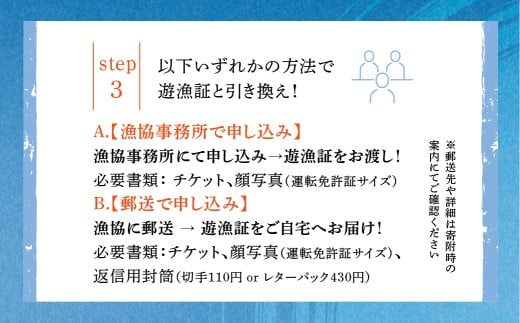 「遊漁証と交換できる引換券」をお届けしますので、所定の手続きによって遊漁証と交換してください。