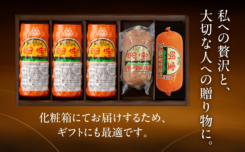 素材の味を活かしたプレスハム、明宝ハムと明方ハムが両方入ったセットです。