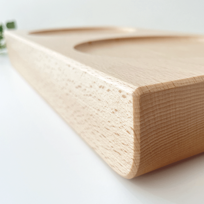 一枚の無垢材の状態から削り出していくことで、より木の自然な木目を感じていただけます。