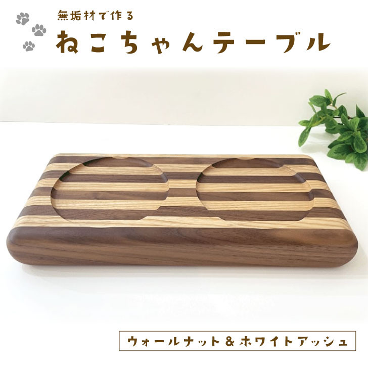 ねこちゃん用のミニサイズの木製テーブル。 【年内発送】【C-38】KATOMOKU ねこテーブル 2器用 しましま ペット ペットグッズ 猫用品 その他 40000円 カトモク 加藤木工 年内配送 年内お届け 12月