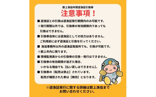 郡上漁業協同組合が発行する鮎年間遊漁証(2026シーズン用)です。 岐阜県郡上市 郡上漁協 鮎年間遊漁証(2026シーズン)郡上漁協発行 長良川 アユ釣り 年券 チケット 引換券 鮎 52000円 G0099