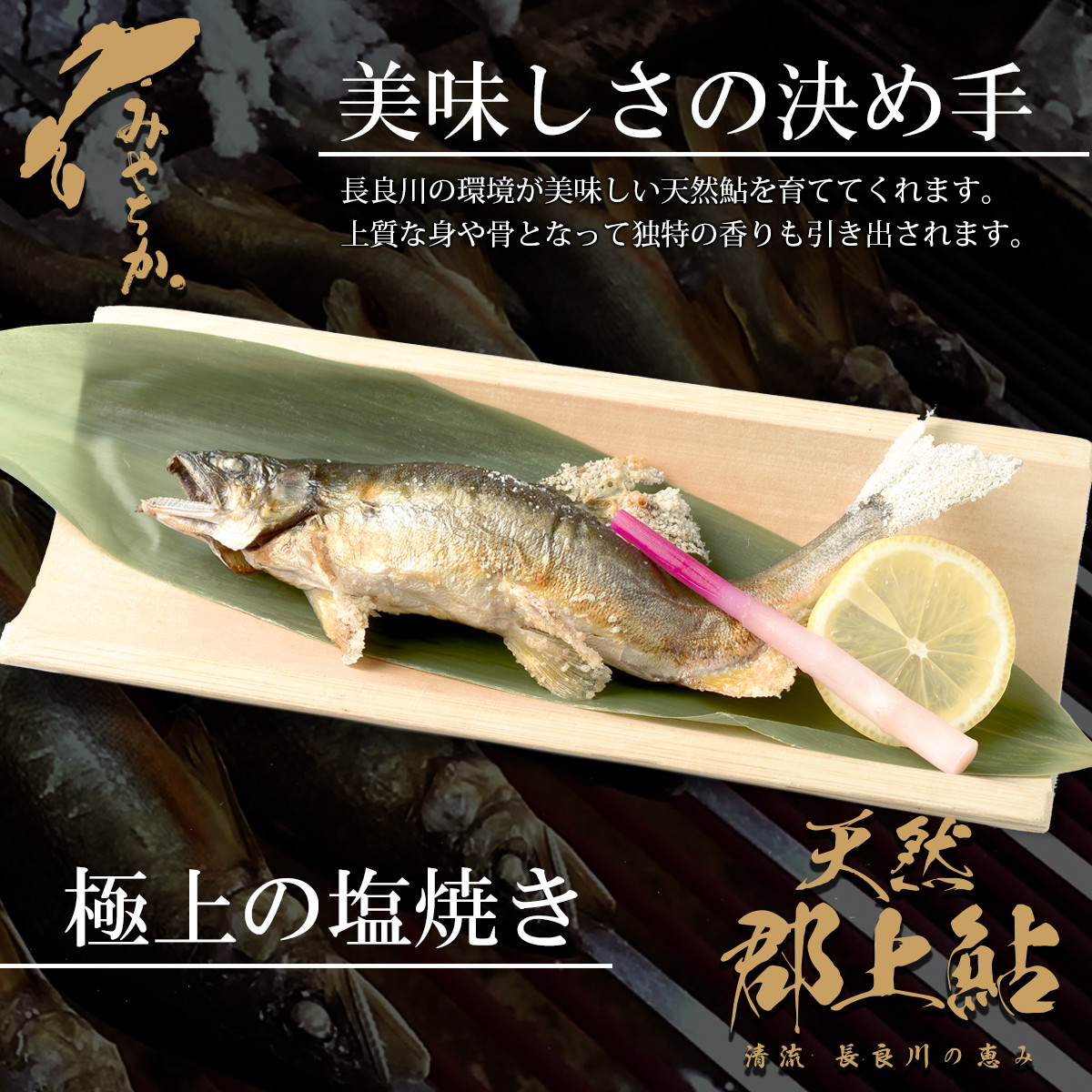 郡上市のヤナ場(長良川に仕掛けた漁場)で獲れた天然鮎の塩焼きです。