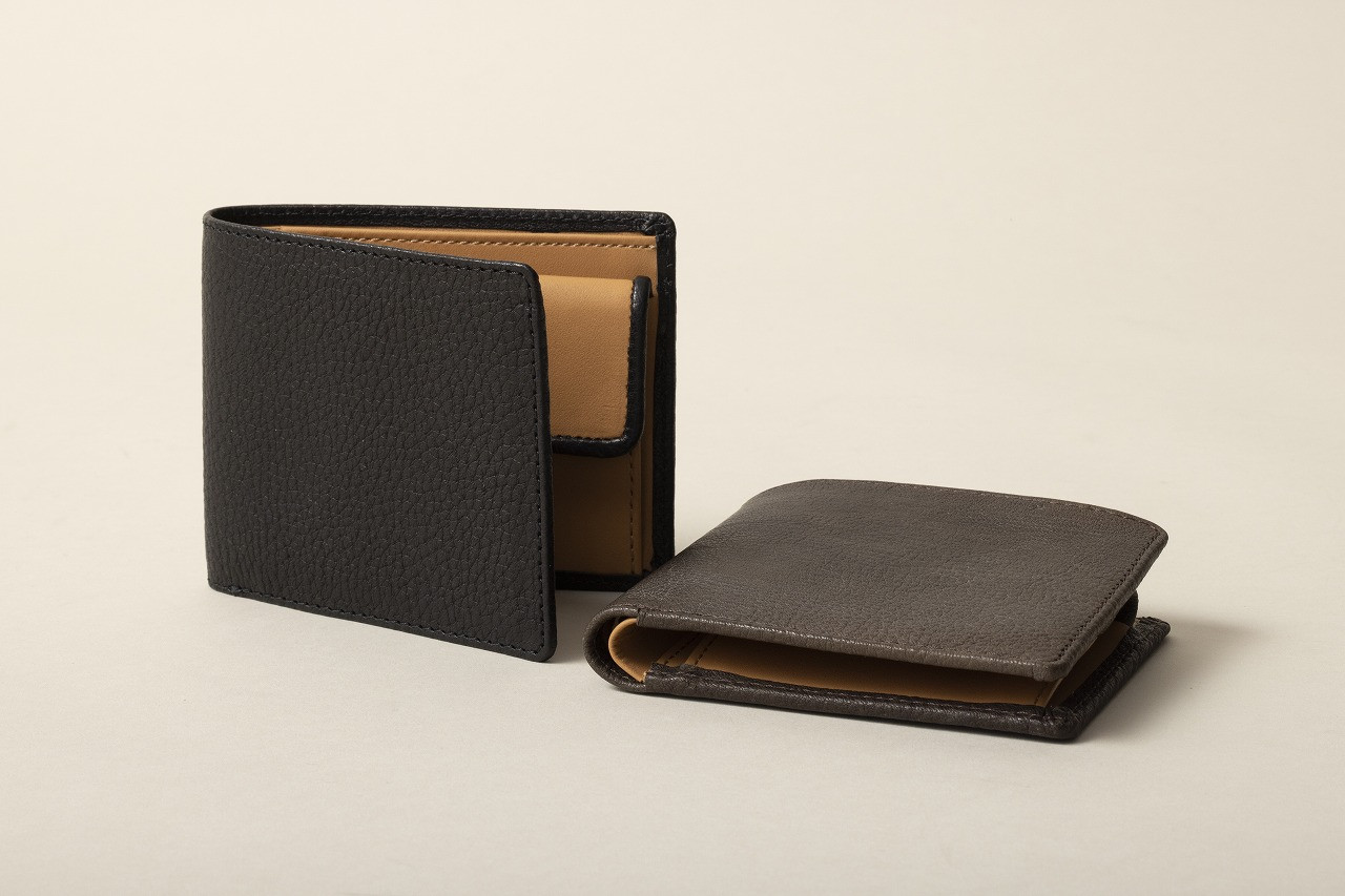 野生鹿革の独特な味のある色としなやかな触感が手に馴染むベーシックな型の2つ折り財布です。