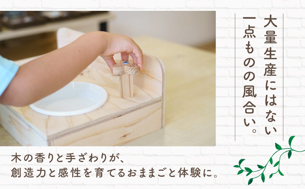 自然豊かな岐阜県郡上市の建築工務店が、家づくりで出た端材を再利用して丁寧に手作りした、環境にも優しいお子さま向けのミニミニキッチンです。