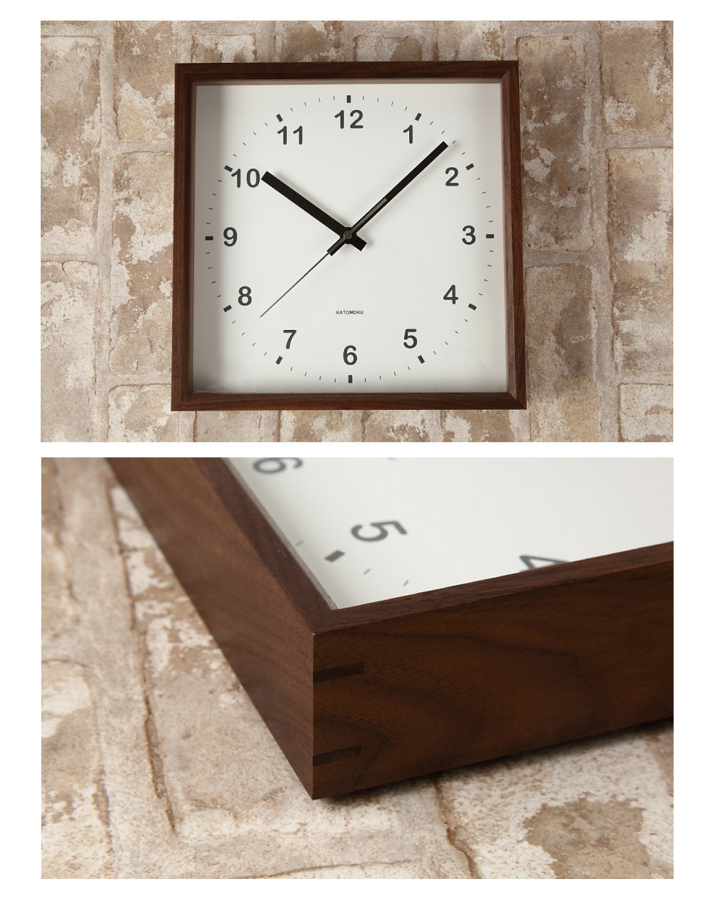 「KATOMOKU」のシンプルスタイル壁掛け時計に スクエア型が加わりました。 【A-178】KATOMOKU Square clock km-37 木製掛け時計 インテリア 寝具 収納 置き時計 掛け時計 掛け時計