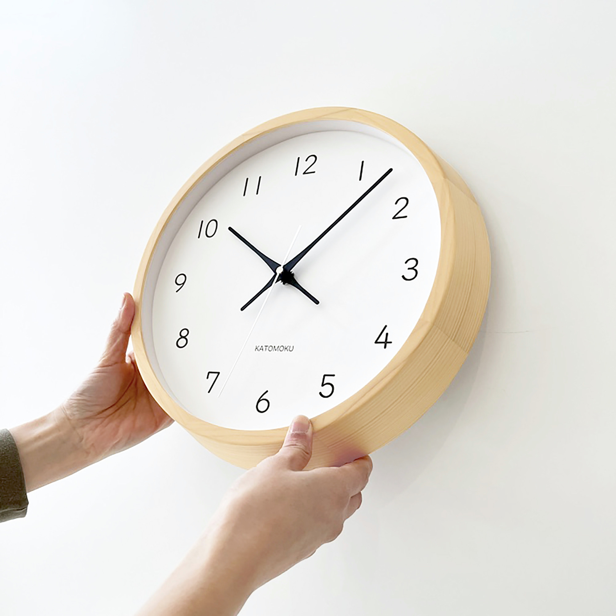 無垢材を肉厚に組み上げ、無骨な状態から美しい曲線になるまで削り出した木枠シリーズ 【C-56】KATOMOKU Muku clock km-104 木製掛け時計 インテリア 寝具 収納 置き時計 掛け時計 掛け時計