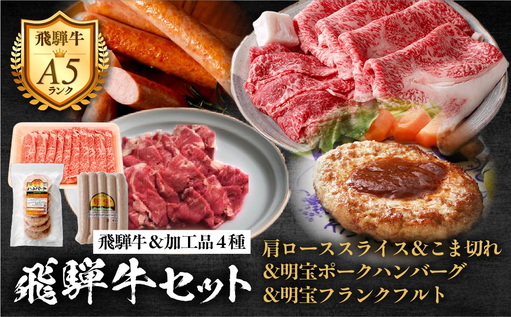 飛騨牛A5等級肉と、オリジナル明宝ポークハンバーグ、明宝フランクセット。 【C-69】郡上産飛騨牛セットC-2[A5等級]こま切れ320g・肩ローススライス290gと明宝ポークハンバーグ8枚・明宝フランクフルト5本 牛肉 肉 すき焼き すきやき しゃぶしゃぶ 牛肉 肉 おにく 牛肉 肉 商品 飛騨牛 牛肉 小分け 飛騨牛 牛肉 飛騨牛 すき焼き用 すき焼きセット スライス肉 和牛 国産 スライス スキヤキ 高級 ギフト 人気 すき焼き肉 牛しゃぶ 鍋 すき焼き鍋