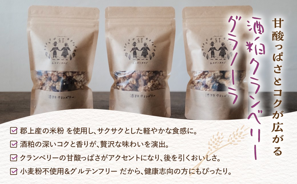 郡上産米粉や、地元蔵元の酒粕を使った、卵や乳製品、小麦、白砂糖不使用のグラノーラ \卵・乳製品・小麦・白砂糖不使用/ 酒粕クランベリーグラノーラ120g×3個セット食品 パン ジャム シリアル シリアル グラノーラ 個包装 グルテンフリー ヨーグルト ミルク 牛乳 アイス 10000円 1万円 [G0006]