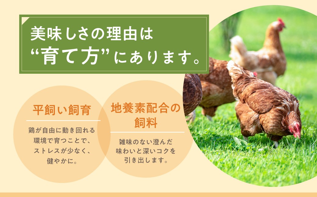 甘みやコク、旨味があり、生臭みの 少ない美味しい新鮮卵となります。