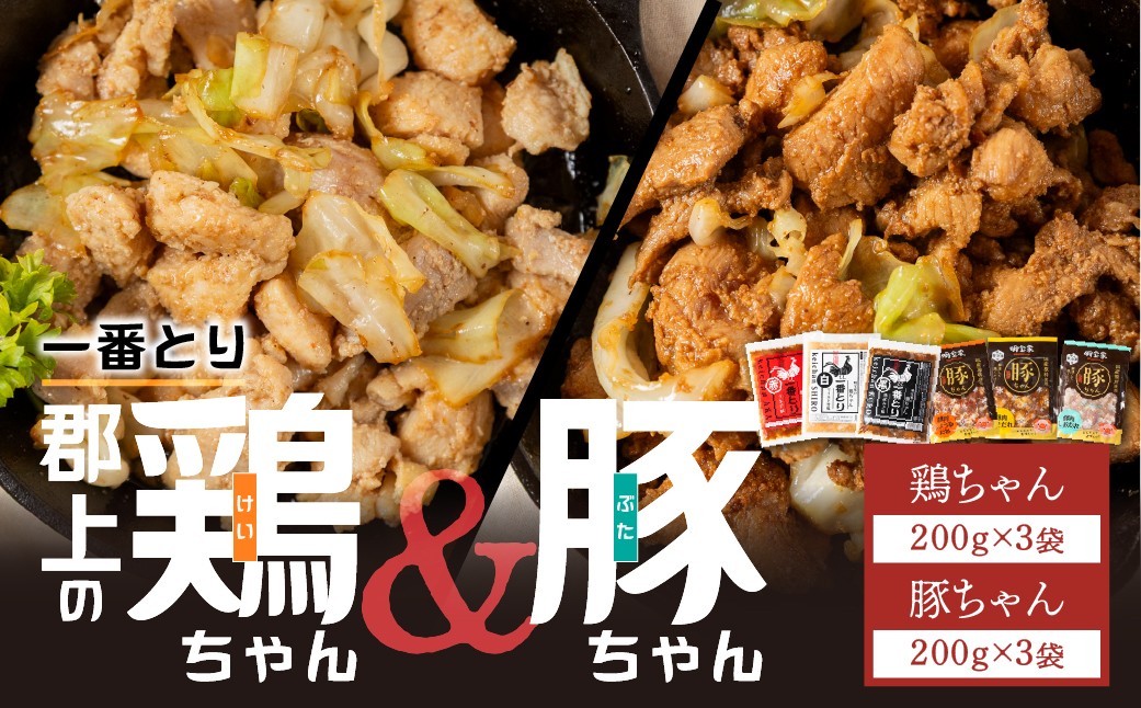 冷凍ストック飯にもオススメ、郷土料理・鶏ちゃんと豚ちゃんのセット 焼くだけ簡単 味付肉(鶏肉・豚肉)一番とり&豚ちゃん 各200g 小分け/ 食品 精肉 肉加工品 鶏肉 豚肉 セット 詰め合わせ 10000円 鶏ちゃん 明宝家 A-245