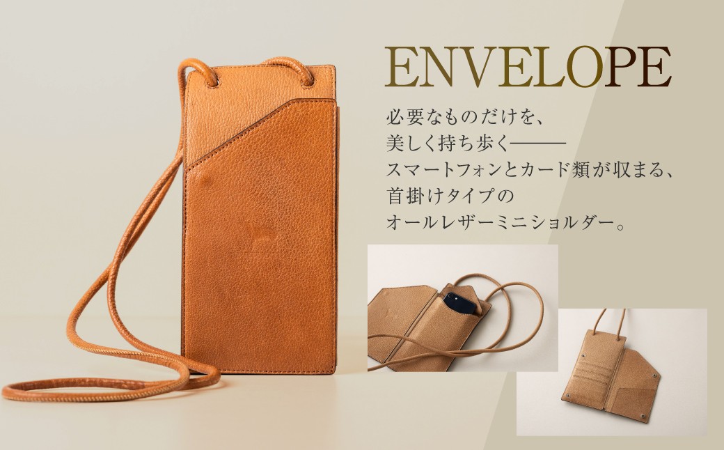 郡上市で捕獲された野生鹿革を使った首掛けタイプのスマホショルダーバッグ FORESENT ENVELOPE|革のカシミヤ 郡上市産 明宝鹿革 スマホショルダーバッグ/ミニウォレット 日本製 130000円 G0186