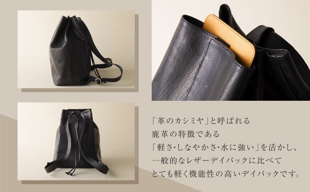 野生鹿革を全面に使用したレザーデイパック