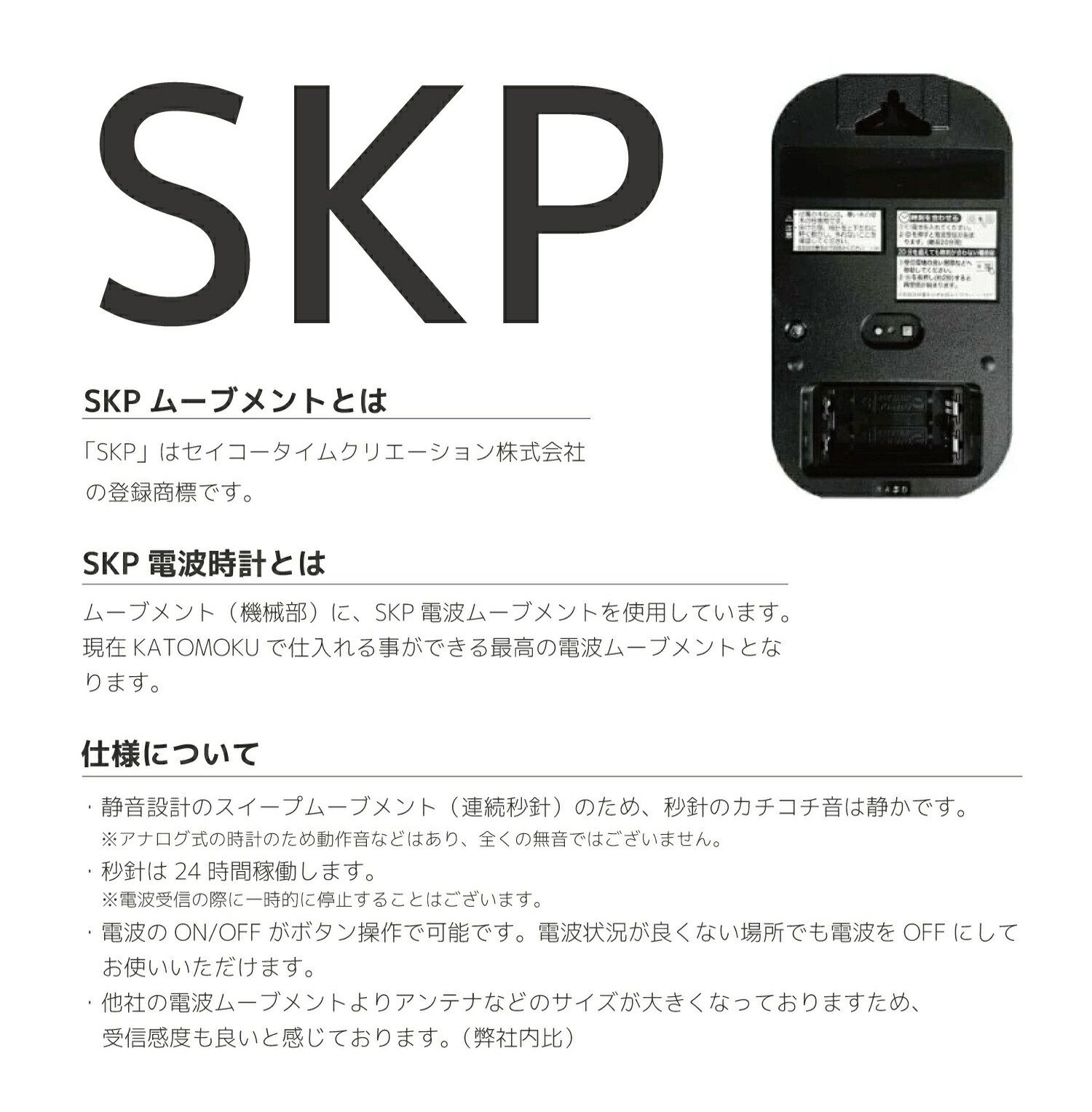 ※SKPは、セイコークロックの登録商標です。国内メーカーのムーブメントです