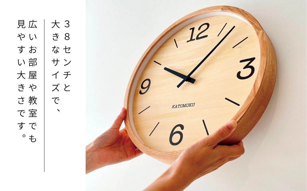 木フレームを使用した大きな時計、広いお部屋や教室などにも最適
