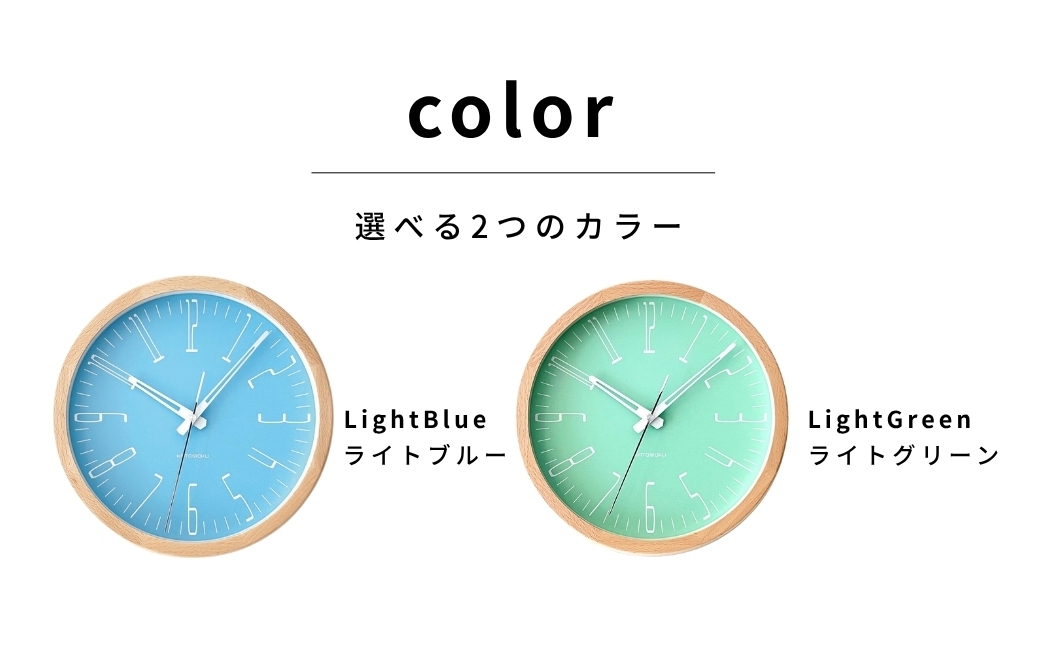 パステル調の優しい色合いのブルーとグリーンの文字盤が特徴の掛け時計です。