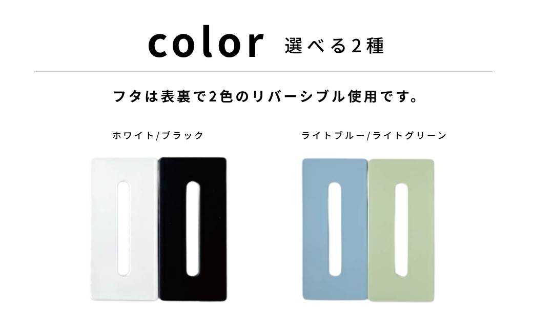 落とし蓋は、ブラックとホワイト、ライトブルーとライトグリーンの2種類から選択でき、