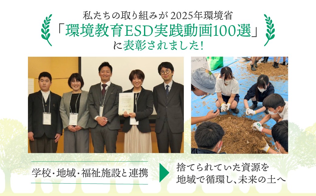 廃棄されていた生ごみを地域で循環させ、CO₂削減や源流保全につなげる取り組みから生まれた堆肥で、学校や地域と連携した環境教育の一環としても評価されています。