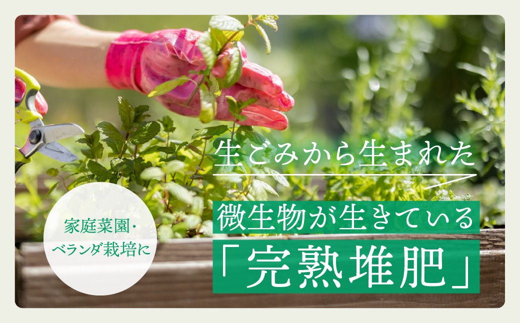 生ごみや落ち葉、米ぬかなど身近な資源を活かし、微生物の力でじっくり発酵・分解させた「完熟堆肥」です。