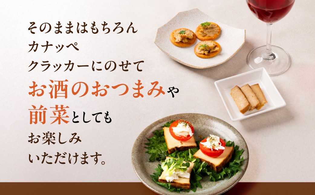 いずれもそのままお召し上がりいただけ、お酒のおつまみや前菜に最適。原材料の大豆、にがり、地味噌はすべて厳選し、手間と時間を惜しまず仕上げた、郡上ならではの滋味深い逸品です。