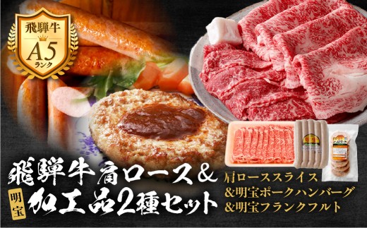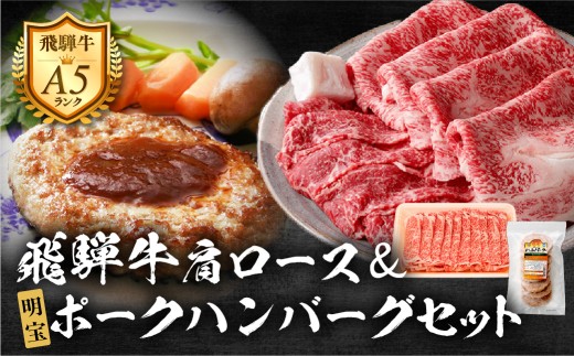 飛騨牛A5等級肉の肩ロースと、オリジナル明宝ポークハンバーグセット。