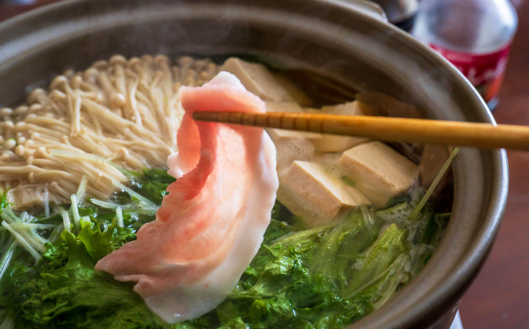 飛騨の二大ブランド肉、飛騨牛と飛騨納豆喰豚のしゃぶしゃぶセットです。比較的脂肪が少なくヘルシーです。