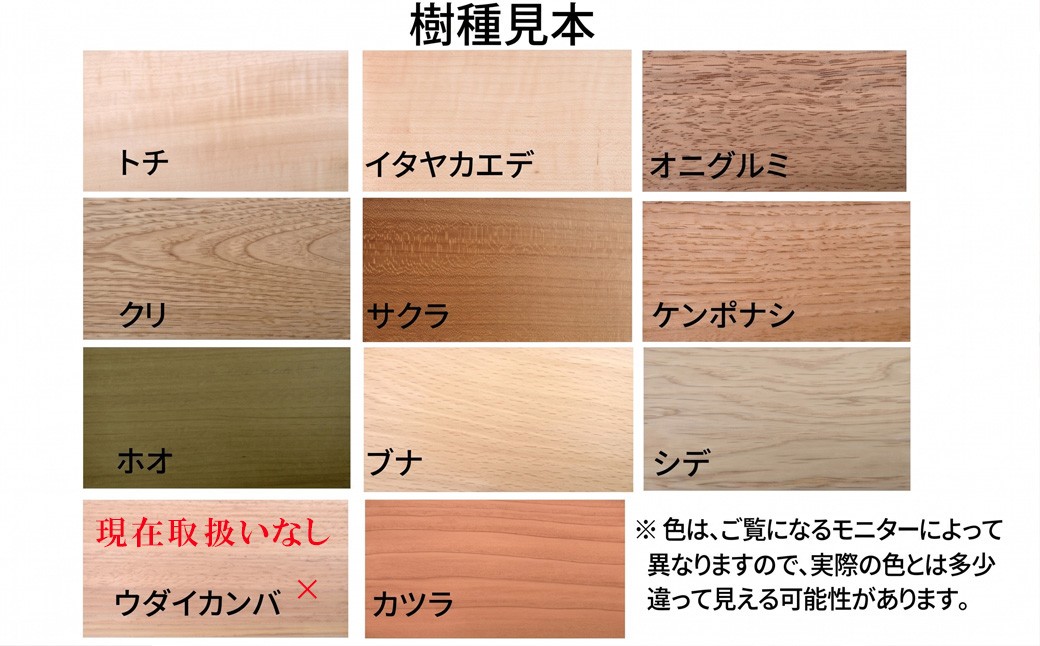 フレームの樹種はバランスをみて、こちらで3種類を選ばせていただきます。