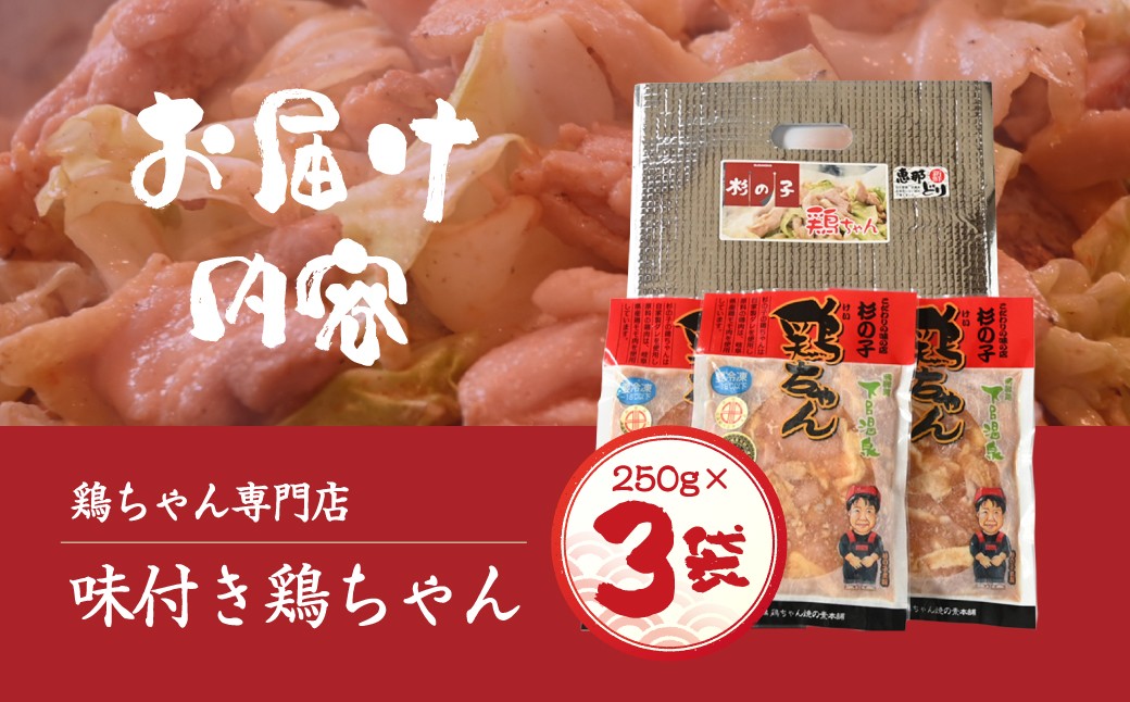 鶏ちゃん専門店「杉の子」味付き鶏ちゃん 250g×3袋 冷凍配送 …