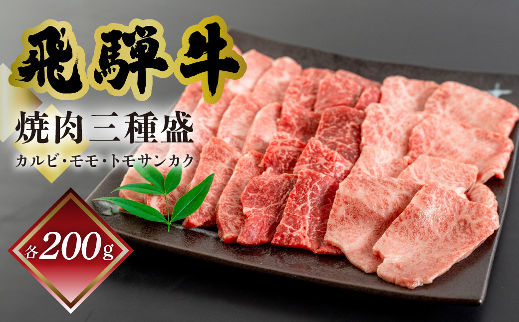 下呂温泉で創業から三代続いている地元密着の飛騨牛専門精肉店です。 菊の井 飛騨牛焼肉三種盛り(カルビ・モモ・トモサンカク 各200g)牛肉 ブランド牛 国産 食べ比べ 焼き肉 ギフト 贈答【冷凍】