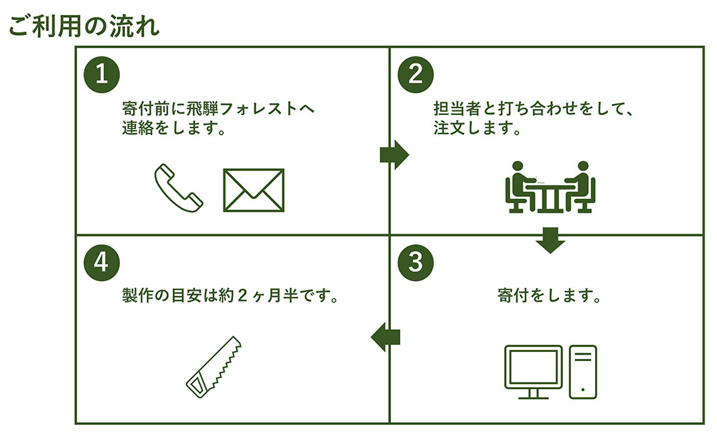 寄付前には、必ず飛騨フォレストへご連絡ください。