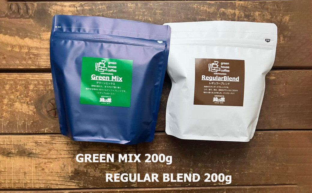 全国のファンに愛され続けて40年。自家焙煎珈琲店〔緑の館〕美味しさを追求した珈琲 緑の館 / レギュラーブレンド・グリーンミックス 豆 各 200g(計 400g)セット コーヒー コーヒー豆 珈琲豆 飲み比べ 珈琲 グリーンハウスコーヒー 下呂市