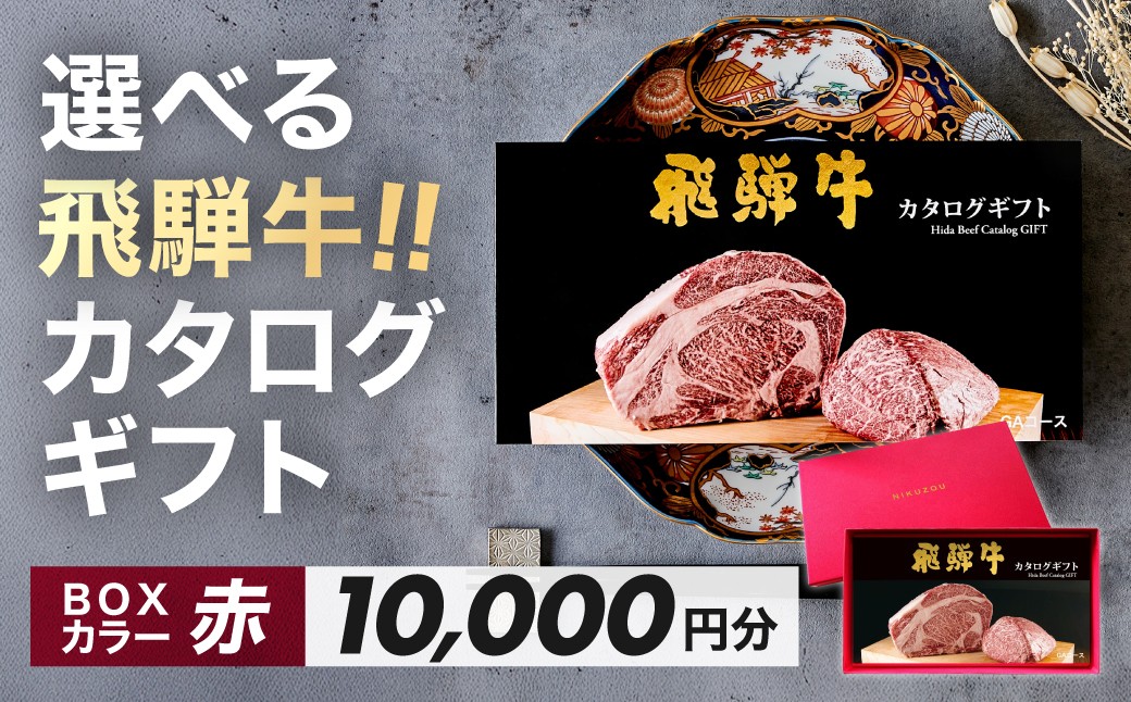 厳選した飛騨牛から、お好きなものをおひとつ。 【BOXカラー 赤】選べる飛騨牛!カタログギフト 10000円分 牛肉 肉ギフト あとから選べる 肉贈 にくぞう ブランド牛 肉 贈答 ギフト プレゼント カタログ 選べる 後から選べる おすすめ 飛騨萩原畜産