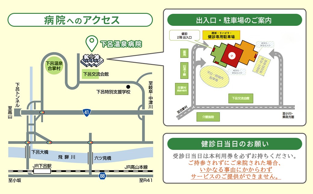スムーズで質の高い健診を心がけています。 下呂温泉癒しの滞在健診パック(基本ドックコース 1名様分と下呂温泉宿泊補助券 1万円分)スタンダードコース【岐阜県立下呂温泉病院 総合健診センター】日帰り 健診 人間ドック 健康診断 ドック 検診 生活習慣病 予防 下呂市