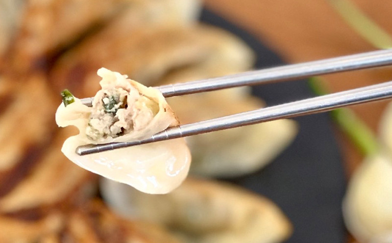海津市内で栽培した発芽にんにくをふんだんに使用した超スペシャル餃子!何度も試作を繰り返し餃子の旨みとにんにくの存在感の両方が生かせるにんにく限界量に挑戦しました。