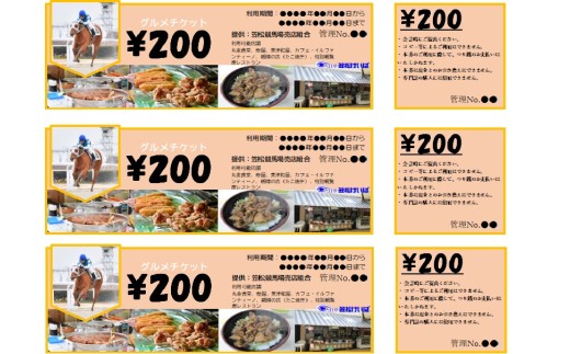 笠松競馬場内の売店で使用できるグルメチケットです。レースの合間に、串かつやどてめしなどのB級グルメをぜひご堪能ください!!