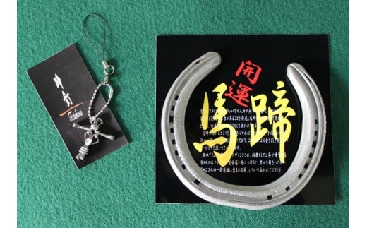 笠松競馬の競走馬が、使用した蹄鉄です。ご祈祷を受けた“開運馬蹄”と、蹄鉄を止める釘で作った蹄釘ストラップ。開運・魔除け・お守りのラッキーグッズです。