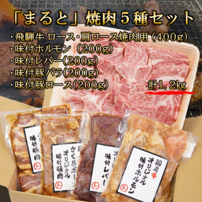 <飛騨牛>焼肉5種セットA-5 ロース・肩ロースと味付けホルモンなど 合計1.2kg【1619901】