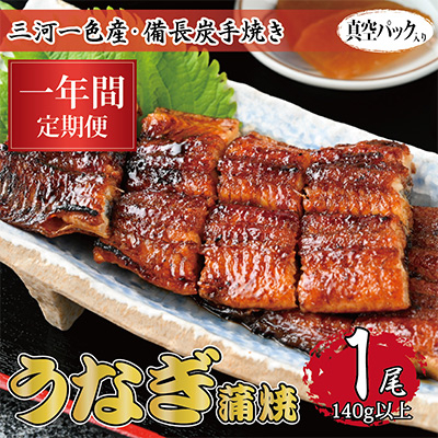 <毎月定期便>三河一色産 備長炭手焼き 昭和9年創業 魚しげのこだわりのうなぎ 蒲焼1尾 全12回【4012737】