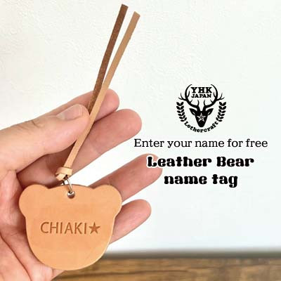 <くまさん>本革ネームタグ/7色から選べる革カラー!/ハンドメイド【1524207】
