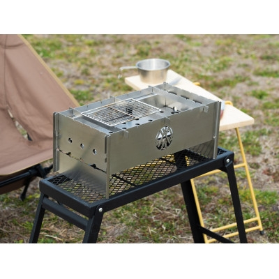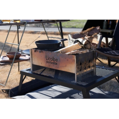 自転車用品メーカーのMINOURAが、Licolbe Outdoorブランドから発表した、厚めのステンレスを使った組み立て式の調理焚火台です。