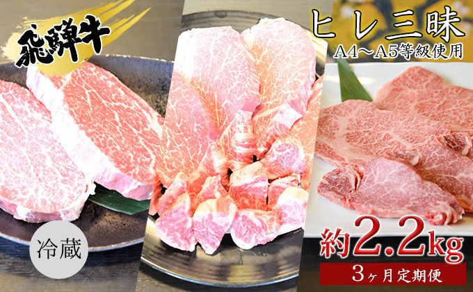 [№5331-0240]飛騨牛 ヒレ三昧 計2.2kg A4~A5等級使用(3ヶ月定期便)