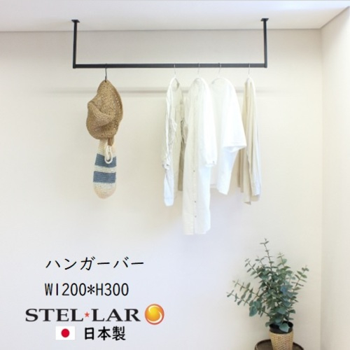 コの字型の天井固定式ハンガーバーです。洗濯物の室内干しや衣類収納に便利です。
