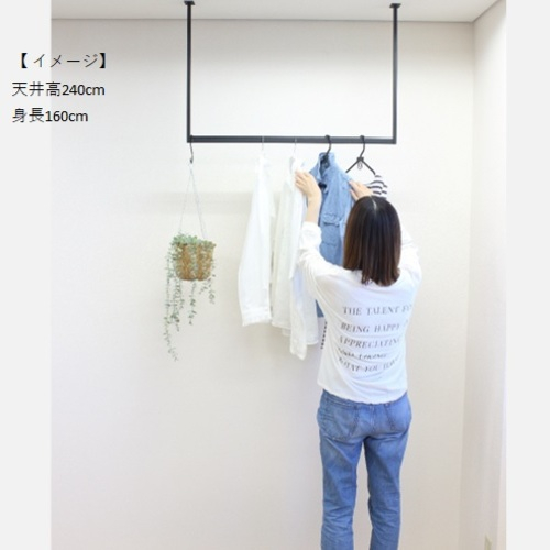 コの字型の天井固定式ハンガーバーです。洗濯物の室内干しや衣類収納に便利です。
