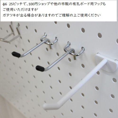 100円ショップをはじめ市販の有孔ボード用フックを取り付け出来ます。